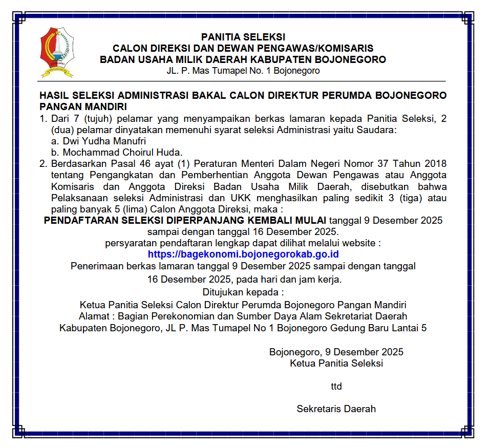 3. Download Perda Pendirian Perumda Bojonegoro Pangan Mandiri